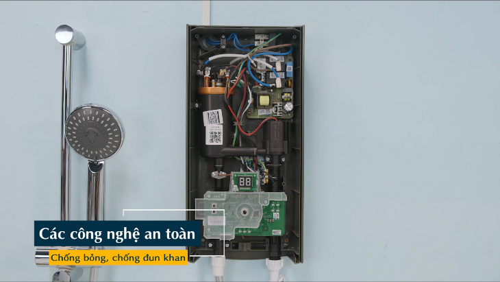 Bên cạnh đó, cảm biến lưu lượng nước được tích hợp có nhiệm vụ tự động ngắt điện khi không có nước, tránh nhiệt độ nước và bình đun quá cao.