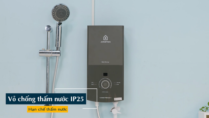 Máy nước nóng trực tiếp Ariston 4500W AURES PREMIUM+ 4.5P không chỉ mang đến nguồn nước nóng nhanh chóng mà còn đem lại giá trị nội thất cao cấp hơn cho không gian phòng tắm. Khi lắp đặt máy với phong cách nội thất đá hoa cương tối màu hoặc lát gạch men với các họa tiết màu xanh rêu thì không thua kém gì các khách sạn cao cấp.
