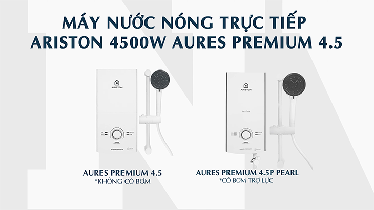 Một lưu ý nho nhỏ cho các bạn quan tâm là máy nước nóng trực tiếp Ariston AURES PREMIUM 4.5 là sản phẩm không có bơm trợ lực gắn trong. Do đó, nếu nhà bạn ở khu vực có áp lực nước yếu thì Điện Máy Xanh gợi ý bạn nên tham khảo các sản phẩm máy nước nóng có bơm trợ lực như AURES PREMIUM 4.5P PEARL.