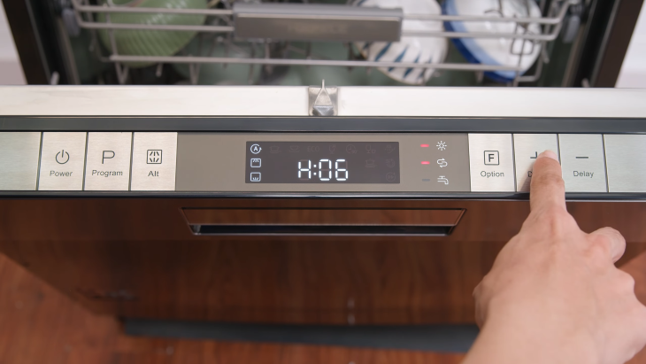 Bạn có thể hẹn giờ bắt đầu rửa với nút Delay