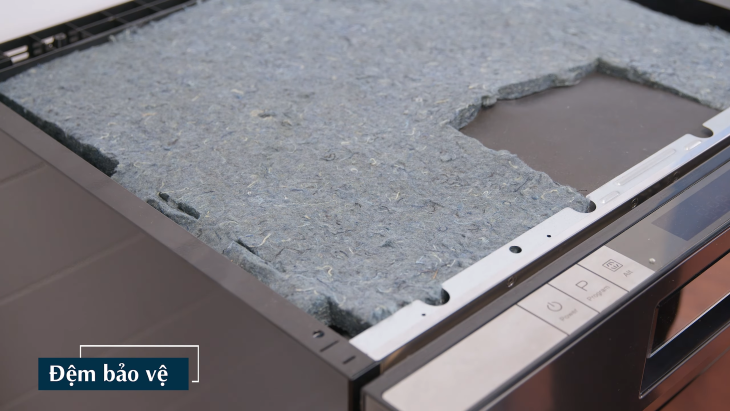 Nếu bạn chưa từng tiếp xúc với máy rửa chén bán âm bao giờ thì ấn tượng ban đầu có thể sẽ là sự trơ trọi như bức hình bên dưới. Lớp vỏ ngoài đen hay bạc như những chiếc máy rửa chén khác đâu rồi? Đơn giản vì sản phẩm này là loại máy rửa chén bán âm, tức là thường người ta sẽ đặt chúng bên trong tủ bếp, chỉ có bề mặt của cửa máy là sẽ được ốp một lớp vật liệu với màu sắc tương tự màu tủ nơi nó được đặt vào để tông xuyệt tông. Đồng thời để lộ phần màn hình hiển thị để người dùng dễ quan sát thông tin về trạng thái hoạt động của máy: đang chạy chương trình nào, thời gian còn lại bao nhiêu...