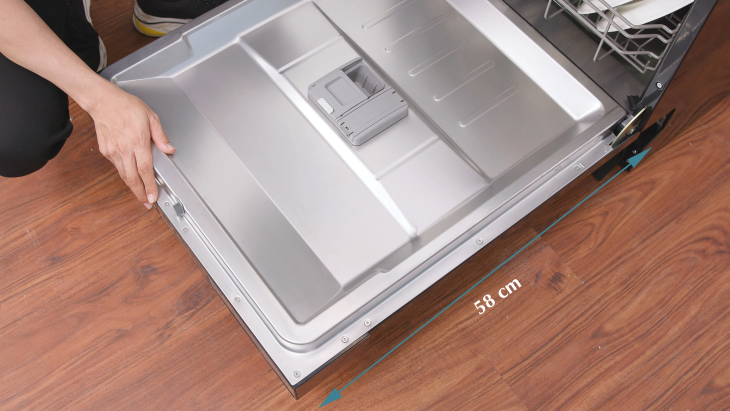Khi mở cửa máy hết cỡ ở góc 90 độ thì chiều dài đo được là 58 cm