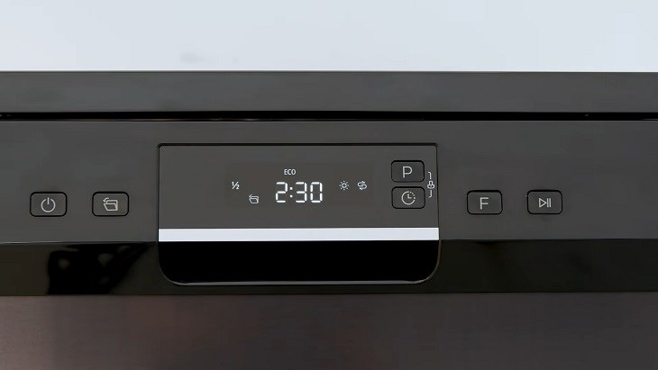 Về tổng quan, bảng điều khiển sở hữu các nút bấm phím cơ khá nhạy, không cần dùng nhiều sức nhưng vẫn phản hồi rất tốt. Màn hình hiển thị có độ sáng vừa phải, đèn LED tông màu vàng dịu mắt nên dù là đêm hay ngày thì vẫn đảm bảo khả năng hiển thị tốt, các ký hiệu chương trình rửa được minh họa dễ hiểu.