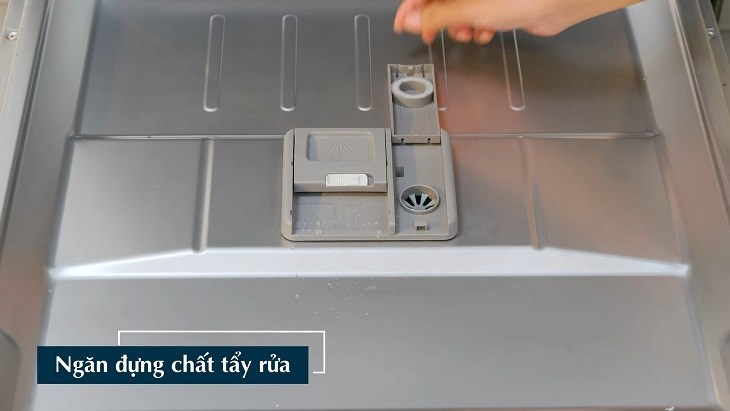 Tương tự các loại máy rửa chén khác, trên cửa của máy này cũng có ngăn đựng viên rửa chén và ngăn đựng chất làm bóng để đảm bảo quá trình rửa được sạch hơn. Bên trong thì có ngăn chứa muối chuyên dụng làm mềm nước phục vụ cho việc rửa chén, đồng thời đảm bảo tuổi thọ của máy.