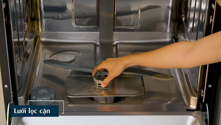 Sau cùng, dĩ nhiên không thể thiếu bộ lọc cặn bẩn có thể tháo rời, giúp giữ lại các phần thức ăn thừa sau quá trình rửa chén và bạn cũng hãy làm sạch nó sau mỗi lần rửa nhé.