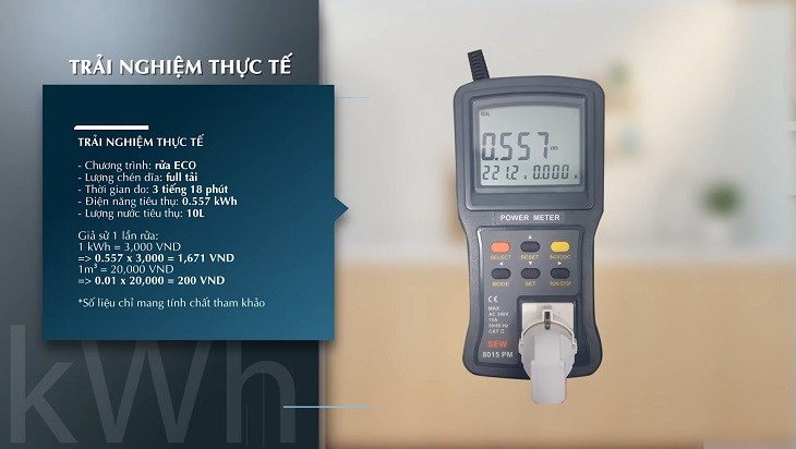 Đây là các con số cho thấy sản phẩm không gây tốn nhiều điện và nước, nhưng vẫn giữ cho chén dĩa sạch bóng.