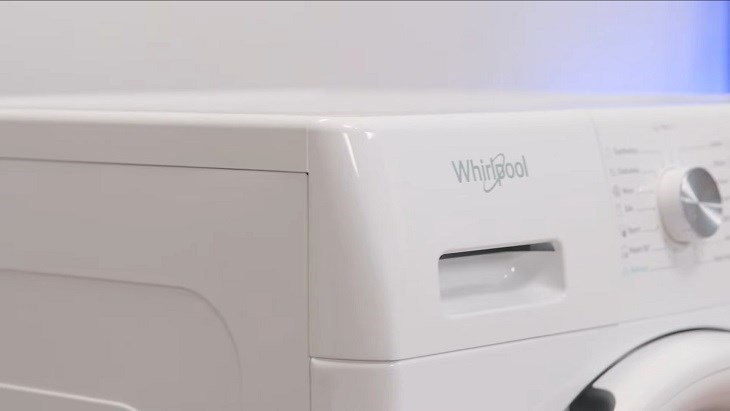 Khoang chứa nước của máy sấy ngưng tụ Whirlpool thiết kế dạng ngăn kéo bên trên cửa lồng, có dung tích 5 lít tương đương khoảng 3 mẻ quần áo ướt 5 kg.