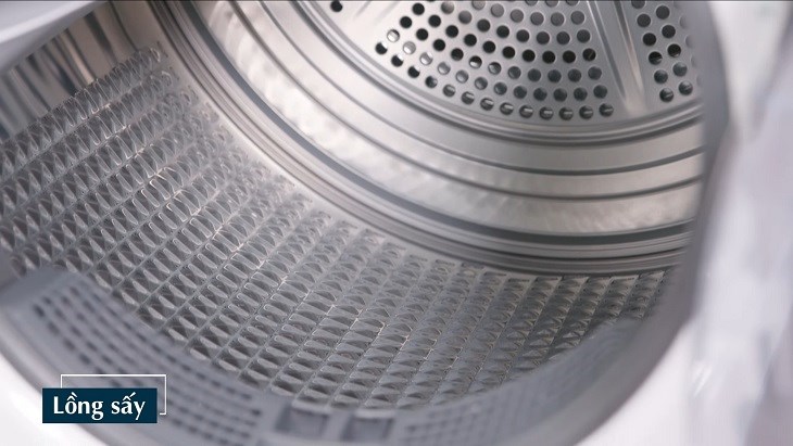 Đường kính cửa lồng sấy khá lớn (34 cm), có thể nhét vừa một con gấu bông hoặc chăn mền kích thước lớn, hoặc các loại quần áo nặng (như áo khoác jean, quần jean,…). Khối lượng sấy tối đa của máy là 8 kg, phù hợp cho những hộ gia đình từ 3 - 5 thành viên, hoặc những gia đình nào có trẻ nhỏ phải thường xuyên giặt giũ, phơi khô đồ mỗi ngày.