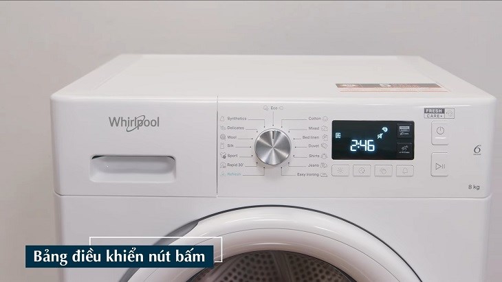 Whirlpool là một trong những thương hiệu sản phẩm gia dụng hàng đầu của Mỹ, nổi tiếng với các dòng máy giặt hướng tới sự đơn giản, hiện đại, hiệu suất hoạt động cao mà vẫn tiết kiệm năng lượng tối đa. Ngoài ra, nhắc đến thương hiệu này chúng ta không thể không nhắc đến các dòng máy sấy quần áo chất lượng vượt trội cùng tính năng đa dạng. Bài viết hôm nay sẽ giới thiệu đến các bạn một sản phẩm như vậy: Máy sấy ngưng tụ Whirlpool FreshCare+ 8 kg FFTCM118XB EE.