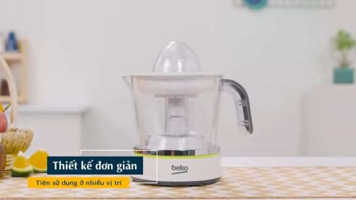 Máy vắt cam Beko có thiết kế khá đơn giản với gam màu trắng trung tính chủ đạo và tô điểm thêm phần viền kim loại sáng bóng. Điều này giúp cho máy trở nên khá tối giản và có thể đặt được ở nhiều vị trí khác nhau trong bếp.