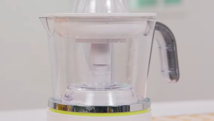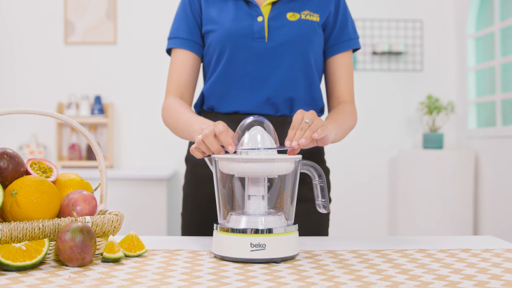 Để máy hoạt động, mình chỉ cần lắp các bộ phận của máy cho cố định lại với nhau rồi cắm điện, sau đó dùng một lực nhẹ là máy sẽ hoạt động một cách trơn tru, giúp cho việc thưởng thức một cốc nước cam trở nên cực kỳ đơn giản.