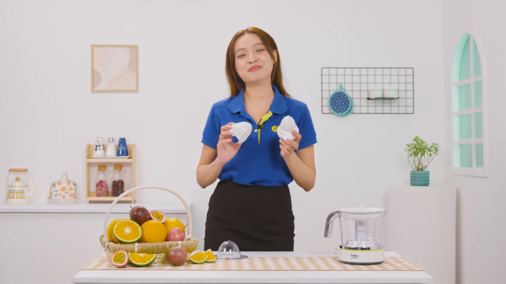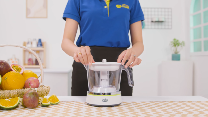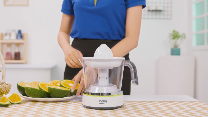 Thêm vào đó là hãng Beko còn thiết kể thêm cả cả nắp chụp trên phần đầu vắt để tránh bụi bẩn bám vào và để chúng ta đỡ phải rửa tráng lại trước mỗi lần vắt.