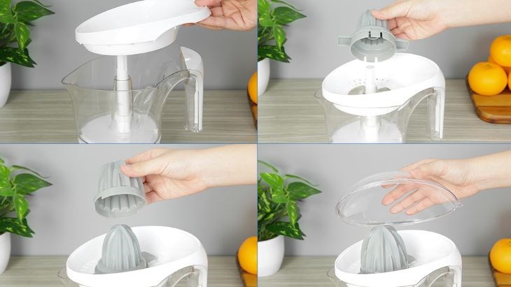 Một điểm cộng ở chiếc máy vắt cam Delites này là cách thức mà máy hoạt động vô cùng đơn giản: bạn chỉ cần nhấn cam nhẹ xuống đầu vắt là máy sẽ xoay để vắt nước. Bạn nhớ lưu ý là kiểm tra xem mình đã gắn bình chứa vào đúng khớp với thân máy hay chưa, đồng thời phải đảm bảo là đã cắm điện.