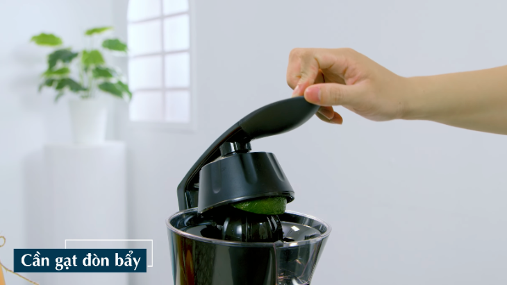 Một mặt, bộ phận này sẽ giữ vệ sinh cho tay khi tránh nước cam văng lên hoặc dính tinh dầu tiết ra từ vỏ cam do dùng lực. Mặc khác quan trọng hơn là trợ lực cho bạn, việc giữ nửa quả cam bằng cần gạt khi vắt sẽ vừa nhẹ nhàng, vừa vệ sinh hơn thông thường.