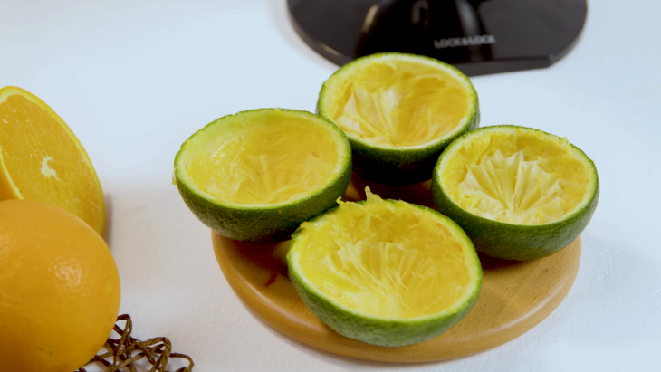 Máy có thể vắt vỏ cam kiệt nước mà không làm vỏ bị mềm hay nát. Điều này đồng nghĩa rằng nó giúp hạn chế tinh dầu trong vỏ cam tiết ra lẫn vào nước, như vậy nước cam thành phẩm của chúng ta sẽ không bị đắng. Còn về việc có lấy được các tép cam nhỏ trong múi cam hay không thì tùy thuộc cách bạn điều chỉnh độ lớn nhỏ của lưới lọc.