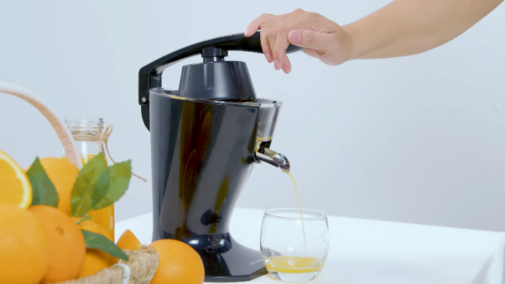 Tuy nhiên, có 1 lưu ý nhỏ trong quá trình sử dụng đó là quả cam có thể sẽ bị lệch nhẹ khỏi cần gạt do kích thước chưa khớp hoàn toàn với nắp đậy. Nếu trường hợp này xảy ra, bạn hãy tạm dừng một chút và điều chỉnh lại để giúp máy vắt kiệt nhất có thể.