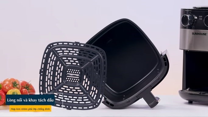 Lòng nồi và khay tách dầu chống dính, an toàn khi sử dụng