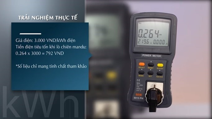Mức điện năng tiêu thụ cho 1 lần chiên chưa tới 1000đ