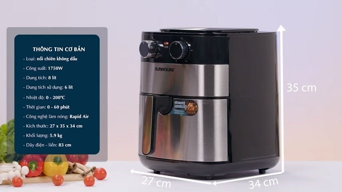 - Dung tích lớn, chế biến được lượng lớn thức ăn mỗi lần chiên