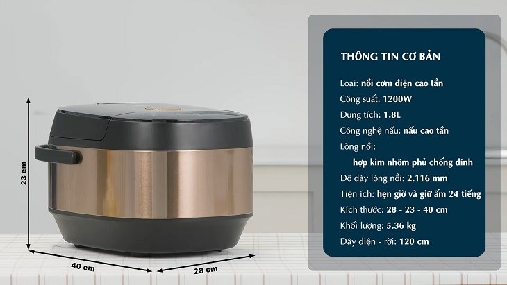 Dung tích lòng nồi là 1.8 lít có thể nấu được 8 - 10 cốc gạo đi kèm theo nồi, đáp ứng phục vụ cho gia đình từ 4 đến 6 thành viên trong một lần nấu.