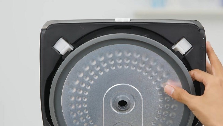 Nút nhấn nồi được thiết kế hình chữ nhật nằm ngay phía trên bảng điều khiển, phía trên nắp nồi có một lỗ thoát hơi nước dễ dàng dàng tháo ra được từ bên trong, thỉnh thoảng bạn có thể tháo phần lỗ thoát hơi nước trên nắp ra để lau bớt phần nước đọng lại trên nồi, đảm bảo vệ sinh trong quá tình đun nấu.