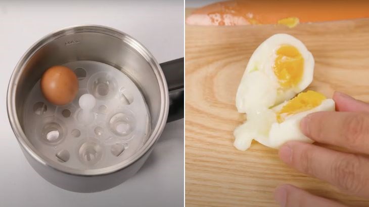 Nồi có kèm 1 khay hấp trứng tiện lợi, với khay hấp này thì 1 lần mình có thể hấp được 5 trứng. Với chi tiết này thì bạn nào thích ăn trứng luộc chắc là thích lắm ha. Mình chỉ cần cho 1 chút nước, đặt khay hấp cùng trứng vào nồi, để cho nồi nấu tầm 8 phút thôi là mình đã có 1 mẻ trứng lòng đào để ăn rồi. Xế chiều hay tối mà đang đói muốn ăn nhẹ thì cũng quá là hợp lí.