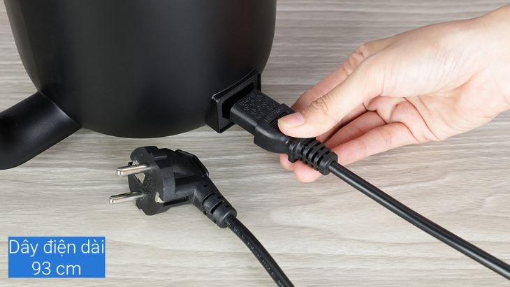 Dây điện đi kèm nồi có chiều dài 93 cm vừa đủ cho việc nấu nướng trong không gian nhỏ. Được cái là dây điện này có thể tháo rời nên sau khi nấu xong mình có thể rút ra và di chuyển nồi lẩu đến những vị trí khác để ngồi ăn rất dễ dàng.