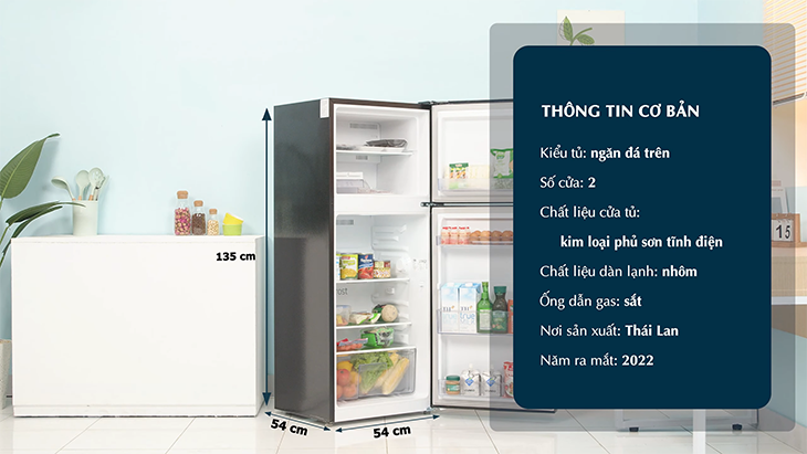 Tủ lạnh Beko Inverter 189 lít đến từ thương hiệu Beko của Thổ Nhĩ Kỳ, là một chiếc tủ lạnh ngăn đá trên có kích thước nhỏ nhắn với chỉ 54 cm mỗi chiều. Tủ chỉ cao 135 cm, có thể đặt gọn gàng dưới tủ bếp treo tường hoặc trong hốc để tủ lạnh của kệ tủ bếp. Cánh tủ làm từ kim loại phủ sơn tĩnh điện màu xám, với điểm nhấn là một dải màu đồng như “dải phân cách” giữa ngăn mát và ngăn đông. Mặt tiền này khiến tủ trông khá hiện đại và phù hợp với thẩm mỹ của nhiều căn bếp.