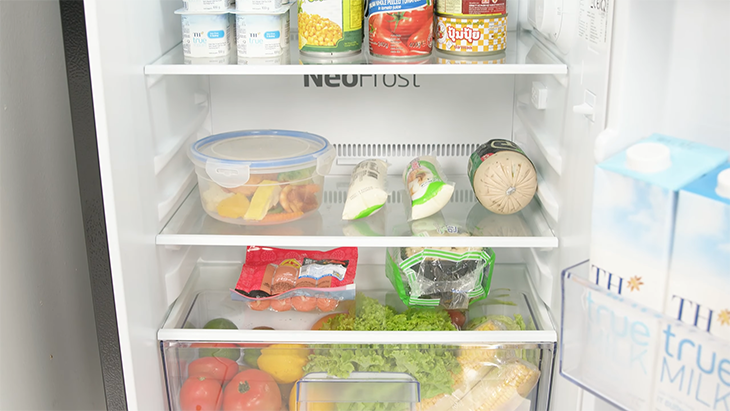 Ngăn mát của tủ có dung tích 139L, có 3 khay kính cường lực và 1 ngăn đựng rau củ.