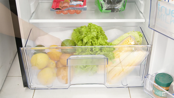 Ngăn đựng rau củ làm bằng nhựa ở dưới cùng, trữ được lượng rau củ cho 2-3 người dùng trong 3 ngày.
