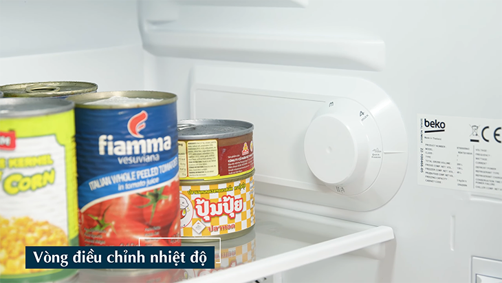 Trong ngăn mát có nút vặn điều chỉnh nhiệt độ với bốn nấc nhiệt khác nhau, chế độ làm lạnh nhanh và chế độ kỳ nghỉ. Chế độ kỳ nghỉ là một chế độ đặc biệt tiện dụng của tủ lạnh Beko Inverter 189 lít, cho phép bạn tiết kiệm điện năng mà chiếc tủ lạnh này tiêu hao mỗi khi bạn vắng nhà lâu ngày. Chế độ này sẽ giảm công suất hoạt động của tủ lạnh và duy trì một nhiệt độ vừa đủ để đảm bảo vi khuẩn và nấm mốc không sinh sôi làm bẩn tủ và gây mùi. Tuy nhiên, nếu muốn đặt tủ ở chế độ kỳ nghỉ thì bạn lưu ý hãy dọn trống tủ trước đó, vì mức nhiệt ở chế độ này không bảo quản được thực phẩm.