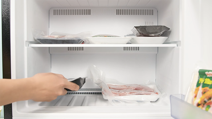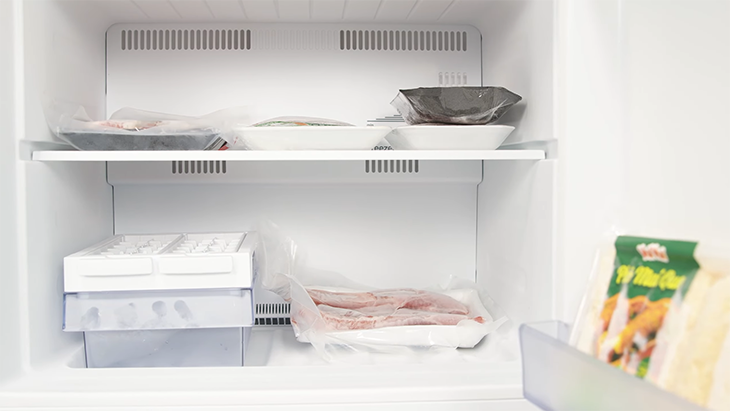 Ngăn đá có dung tích 50L, có đến hai ngăn để đồ tương đối rộng rãi và thêm cả khay trên cánh tủ nữa, nên nếu bạn sắp xếp khéo thì sẽ trữ được đủ thực phẩm cho cả tuần.