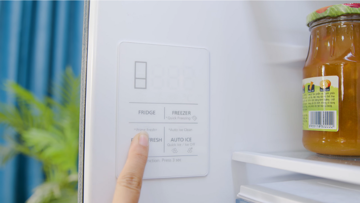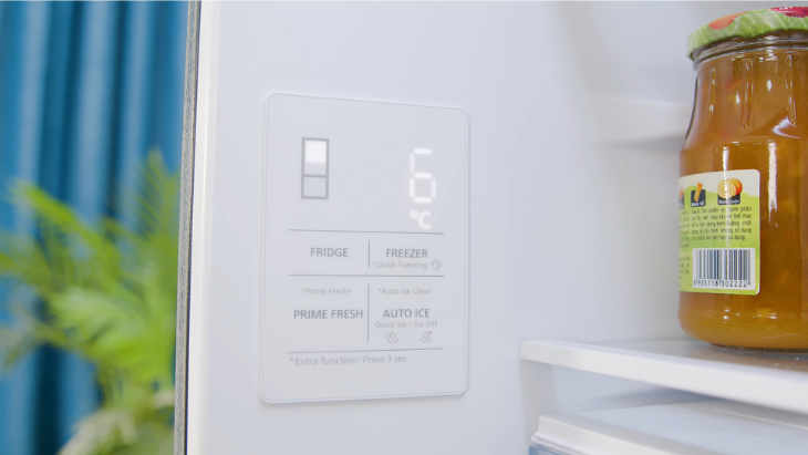 Với mỗi lần chọn ở các nút bấm của từng ngăn Fridge (ngăn lạnh), Freezer (ngăn đông) và Prime Fresh (ngăn đông mềm), phần đèn tương ứng cho ngăn đó sẽ sáng lên và hiển thị nhiệt độ hiện tại của ngăn. Để điều chỉnh nhiệt độ, tiếp tục nhấn vào tên của ngăn đó, lúc này nhiệt độ sẽ được tăng lên 1℃. Sau khi đạt đến mức nhiệt tối đa của ngăn, nhiệt độ quay về mức thấp nhất.