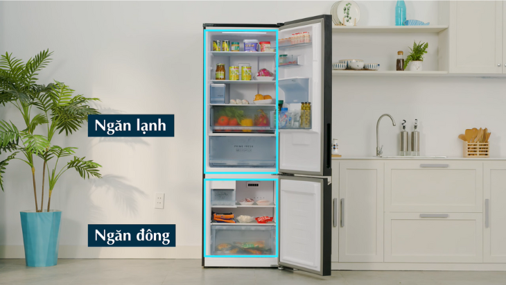 Ngăn lạnh rộng rãi, có nhiều kệ để phân chia thực phẩm