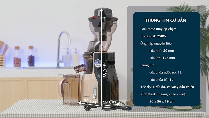 Với thiết kế bề ngang không quá cồng kềnh, máy ép phù hợp với các gia đình có không gian bếp từ trung bình trở lên, chỉ cần một vị trí đặt cố định đảm bảo nguồn điện và thông thoáng để dễ dàng bảo quản, sử dụng máy.