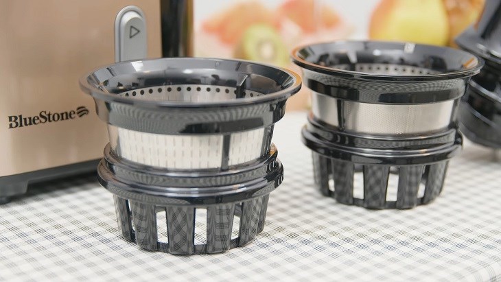 Một điểm nổi bật khác là sản phẩm có trang bị 2 loại lưới lọc có kết cấu khác nhau phục vụ cho 2 loại nguyên liệu riêng biệt: lưới lọc có phần mắt lưới to, dạng khe dùng để ép các loại rau có thân lá; lưới lọc có mắt lưới nhỏ và khít hơn dùng để ép các loại trái cây.
