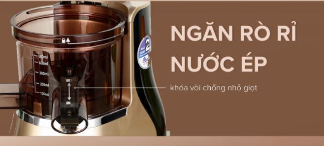 Ngoài ra, thân máy còn có thiết kế khóa vòi chống nhỏ giọt giảm tối đa tình trạng rò rỉ nước ép ra xung quanh, giữ khu vực đặt máy sạch sẽ.