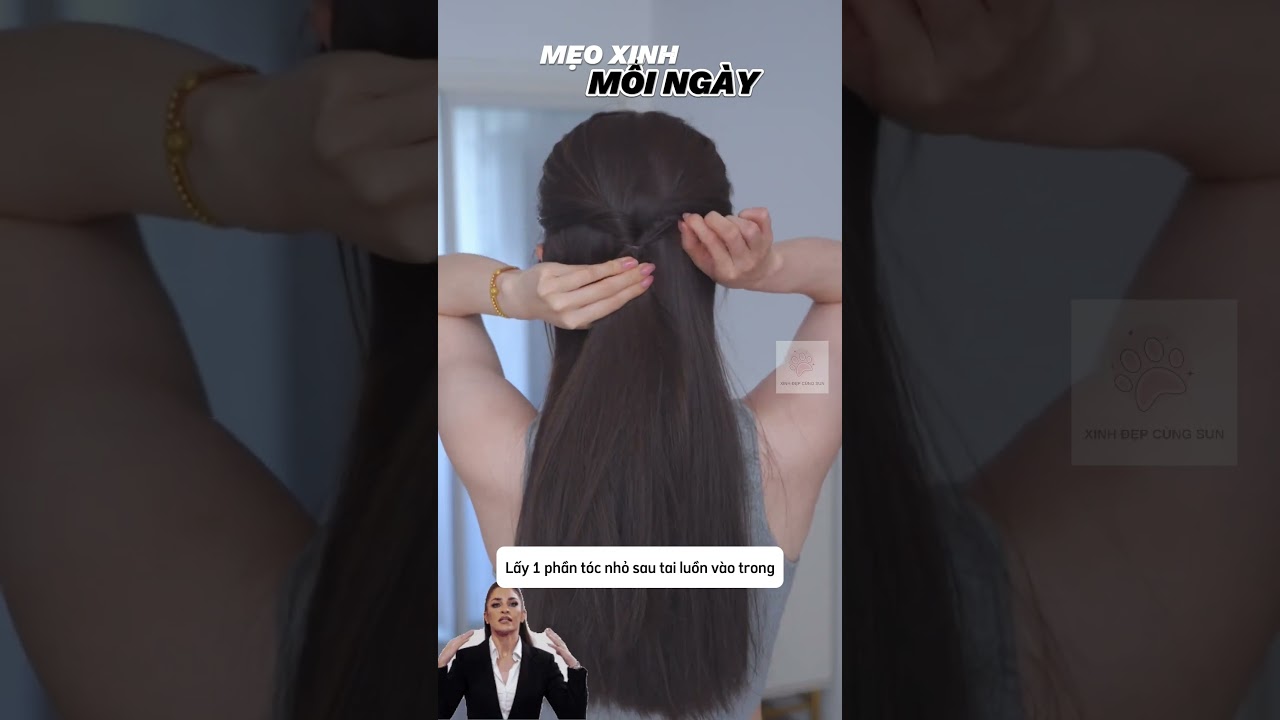 Cách buộc tóc nửa đầu làm thon gọn mặt: