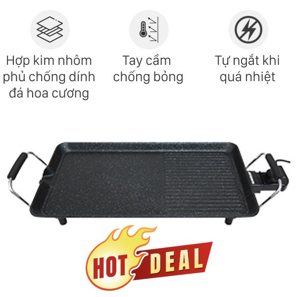 Tiện ích nổi bật: Tự động ngắt khi quá nhiệt, Khay hứng mỡ thừa, Có khe hở hứng mỡ thừa, Tay cầm cách nhiệt