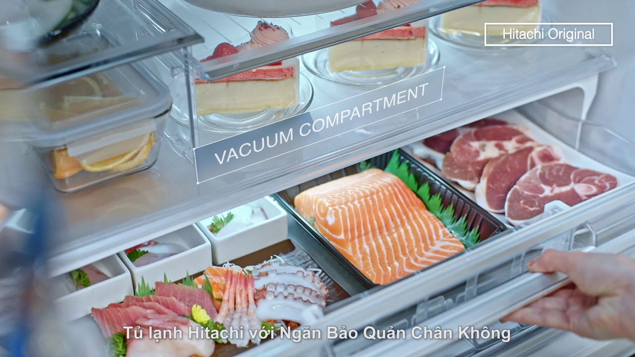 Ngăn chân không trên tủ lạnh Hitachi được thiết kế không gian kín với áp suất chân không 0.8 atm, trong phạm vi nhiệt độ từ -1 độ C đến 1 độ C. Cụ thể: