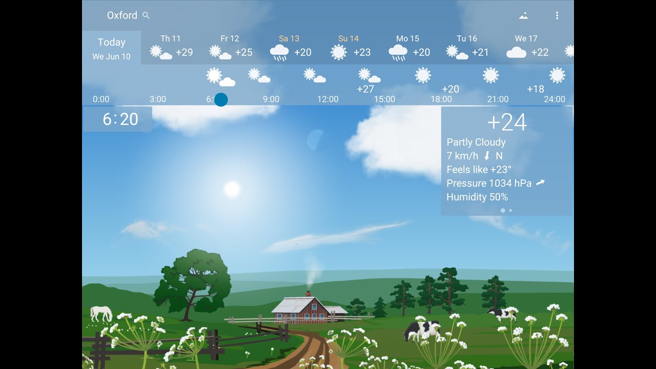 Tuy nhiên, với Awesome Weather by YoWindow bạn có thể di chuyển ngón tay qua trái, phải là bạn có thể xem thời tiết ở bất kỳ thời điểm nào trong ngày, đồng thời ứng dụng này còn hỗ trợ làm hình nền thời tiết trên điện thoại và nhiều tính năng đơn giản mà thú vị khác nữa.
