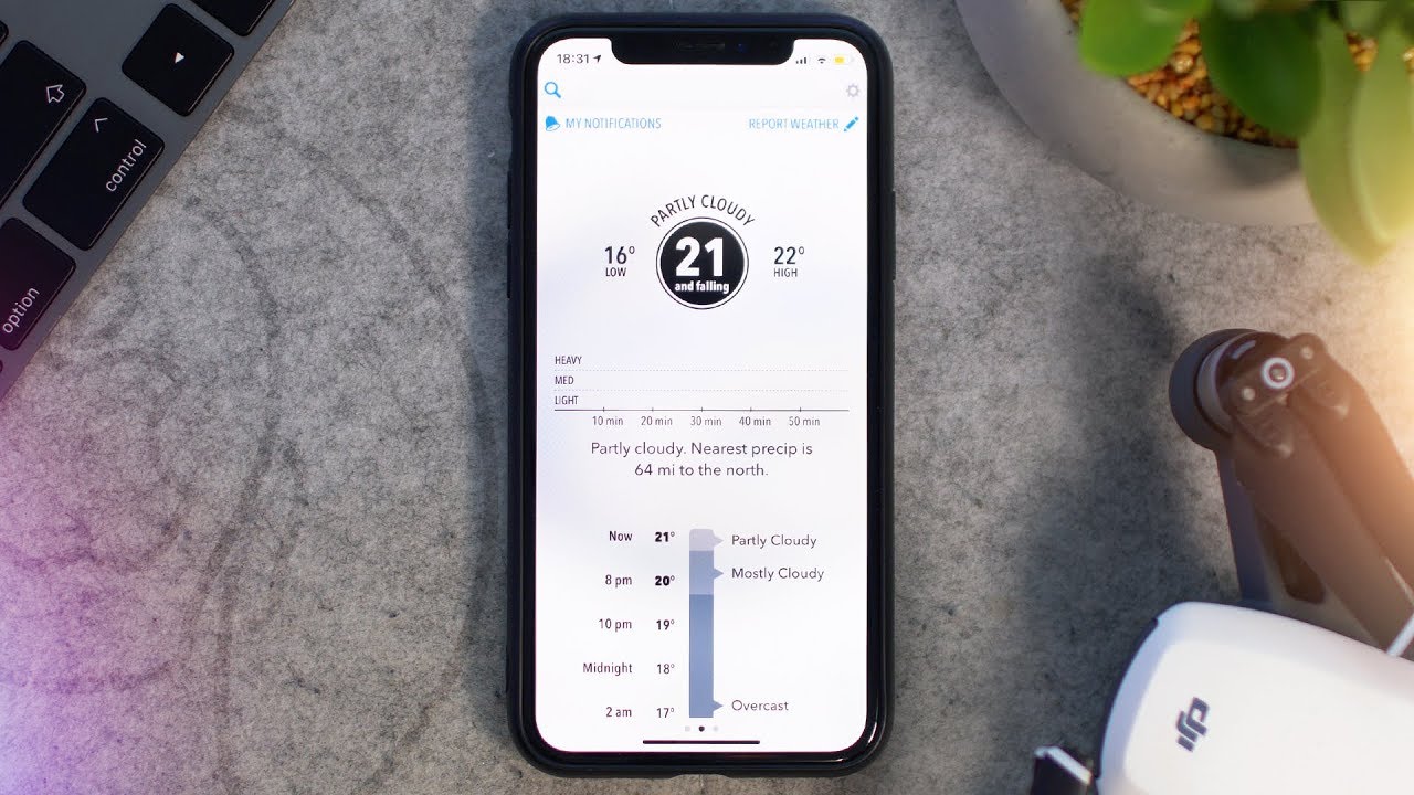 Dark Sky là ứng dụng được nhiều người ưa chuộng. Đặc điểm nổi bật của ứng dụng này là dự đoán chi tiết từng phút, cung cấp cho người dùng những thông tin hữu ích, đơn giản như: Thông báo rằng trời sẽ mưa trong 13 phút tới, thay vì thông báo mơ hồ về khả năng hôm nay trời có mưa.