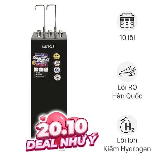 Máy lọc nước RO nóng nguội lạnh Hydrogen ion kiềm Mutosi MP-S128H 10 lõi sở hữu thiết kế tủ đứng tràn viền hiện đại cùng mặt kính cường lực sang trọng. Bảng điều khiển tiếng Việt trực quan, kết hợp nút nhấn và nút vặn giúp việc lấy nước trở nên thật dễ dàng.