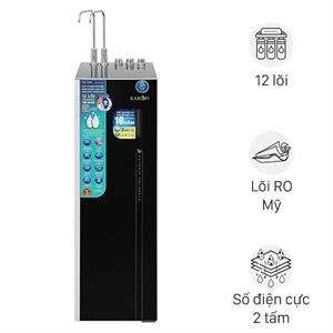 Máy lọc nước RO nóng nguội lạnh Hydrogen ion kiềm Karofi KAE-S688 12 lõi nổi bật với thiết kế tủ đứng sang trọng, tông màu đen huyền bí và mặt kính cao cấp. Bảng điều khiển nút vặn kết hợp màn hình hiển thị trực quan, giúp bạn dễ dàng theo dõi trạng thái hoạt động và chất lượng nước của máy lọc nước Karofi.