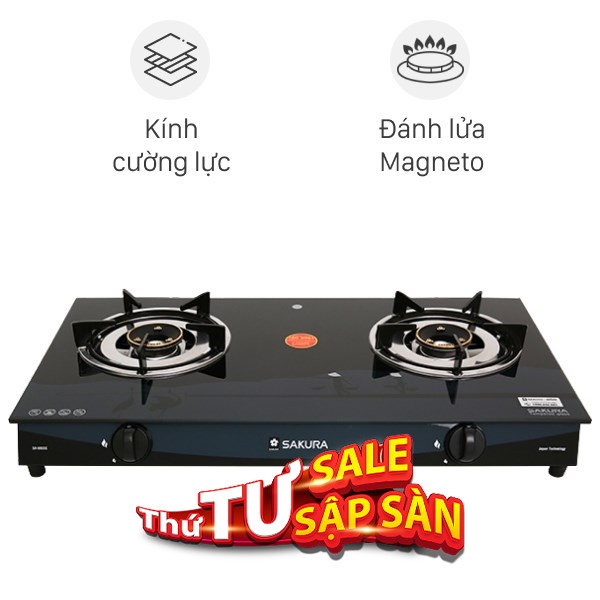 Đứng vị trí thứ 3 là Bếp gas đôi Sakura SA-695SG có thiết kế đẹp mắt, họa tiết sáng tạo, gần gũi với người Việt Nam. Bếp sở hữu 2 vùng nấu linh hoạt cùng kích thước nhỏ gọn phù hợp cho mọi gian bếp.