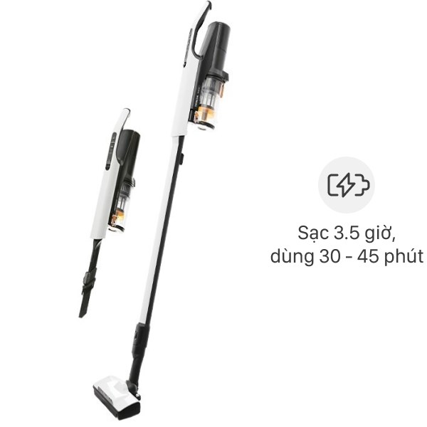 Với pin sạc 2500 mAh, máy hoạt động được 30 phút ở chế độ thông thường và 18 phút ở chế độ tăng cường. Thời gian sạc đầy khoảng 5 giờ. Đây sẽ là lựa chọn tiện lợi cho việc vệ sinh nhà cửa hàng ngày.
