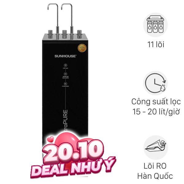 Máy có dung tích bình chứa lớn đến 10.35 lít, đảm bảo cung cấp đủ nước cho cả gia đình. Tiện ích tạo nước kiềm (Alkaline) và giàu Hydrogen trên máy lọc nước Sunhouse này sẽ giúp chăm sóc sức khỏe tốt hơn. Hệ thống 11 lõi lọc, bao gồm cả lõi Nano Silver, giúp diệt khuẩn và chống tái nhiễm khuẩn hiệu quả.