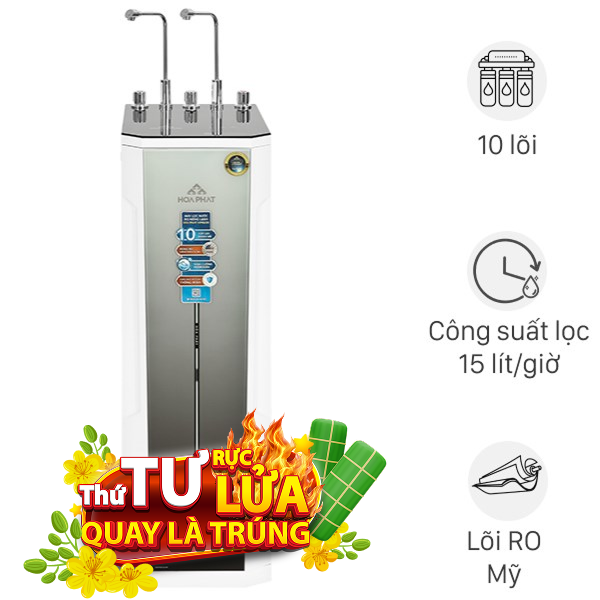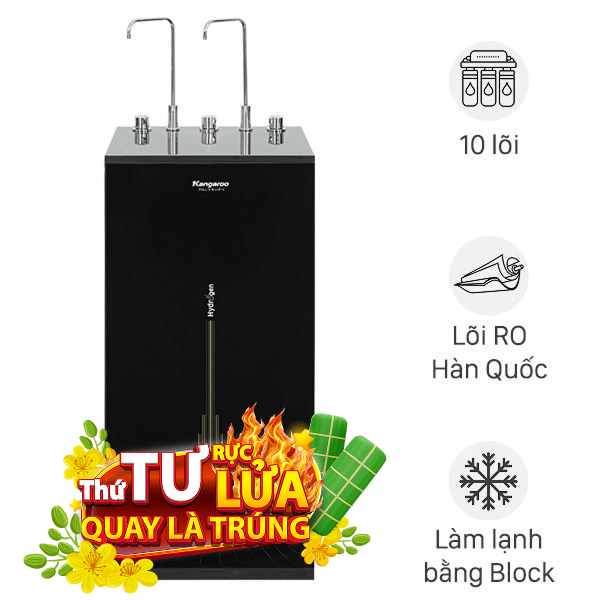 Máy có 10 lõi, gồm Hydrogen+ tạo nước giàu Hydrogen chống oxy hóa, tốt sức khỏe. Máy được trang bị ba chế độ nóng, nguội, lạnh từ hai vòi tiện lợi mọi nhu cầu. Công suất lọc 18 lít/giờ đảm bảo cung cấp đủ nước sạch liên tục cho gia đình đông thành viên sử dụng mà không phải chờ đợi lâu.