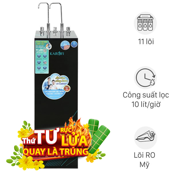 Máy lọc nước Karofi KAD-X58 tủ đứng thanh lịch, sang trọng, 11 lõi lọc. Nút vặn dễ dùng, cung cấp 3 chế độ nóng, nguội, lạnh tiện lợi. Lọc nước máy thủy cục QCVN 01-1, cho nước ra QCVN 6-1 uống ngay, thiết kế hài hòa, tôn lên vẻ đẹp không gian sống.