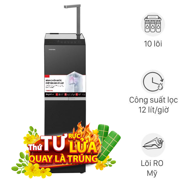 Máy lọc nước Toshiba TWP-W2396SVN(M) tủ đứng hiện đại, sang trọng, nhỏ gọn với 10 lõi lọc. Bảng điều khiển cảm ứng hiện đại, dễ dùng. Máy cung cấp 3 chế độ nóng, nguội, lạnh tiện lợi từ 2 vòi riêng biệt. Cùng với đó, máy có thể lọc nước máy, thủy cục đạt chuẩn, cho nước ra QCVN 6-1 uống ngay, dễ dàng bố trí không gian sống hiện đại.